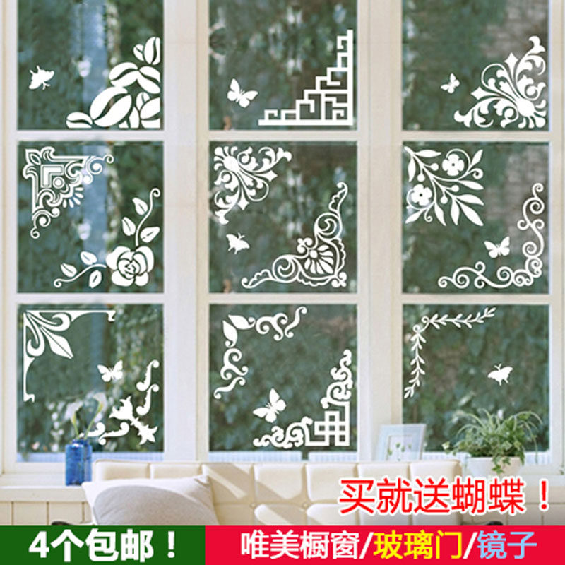窗花贴玻璃橱窗角贴新品贴画卫生间门镜子装饰墙贴店铺花藤对角花热门设计联盟服务商
