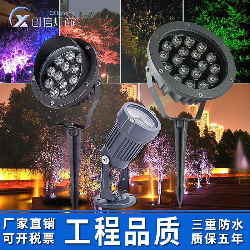 LED圆形投光灯射灯七彩户外防水地插草坪插地照树别墅景观庭院灯热门设计联盟服务商