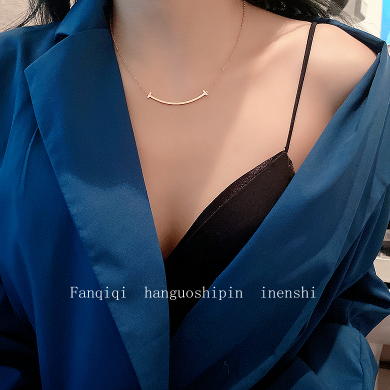 小众设计高级感微笑脸项链女锁骨链玫瑰金钛钢毛衣链子配饰潮网红热门设计联盟服务商