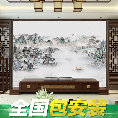 墙壁纸大气5d影视墙纸背景墙山水画电视中式客厅水墨3d热门设计联盟服务商