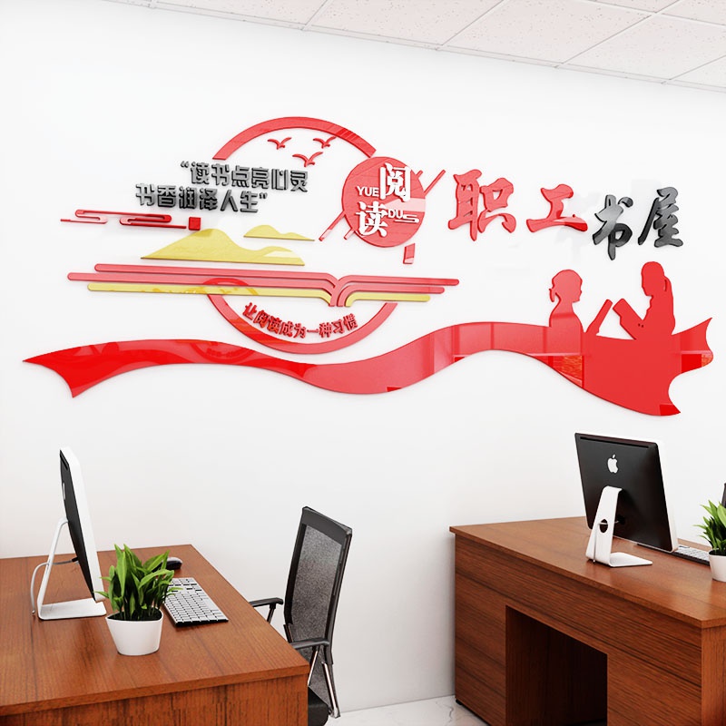 工会文化墙职工书屋墙贴画墙面装饰贴画活动室布置图书室文字标语热门设计联盟服务商