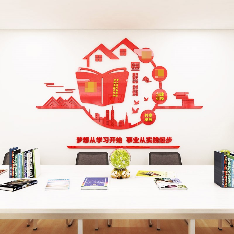 党员活动室墙面装饰职工书屋墙贴图书角布置亚克力自粘标语文字画热门设计联盟服务商