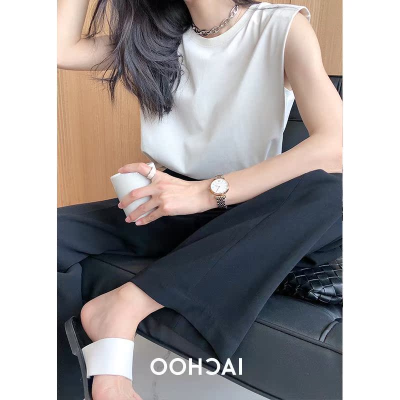 女夏飞飞袖衫感小众垫肩白色t无袖设计打底春夏气质IACHOO2021恤热门设计联盟服务商