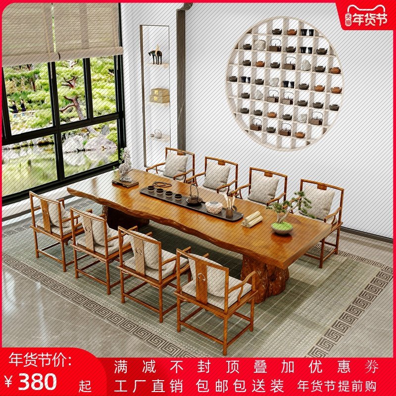茶桌椅组合新中式大板泡茶桌办公室禅意整板功夫茶台阳台实木茶桌热门设计联盟服务商