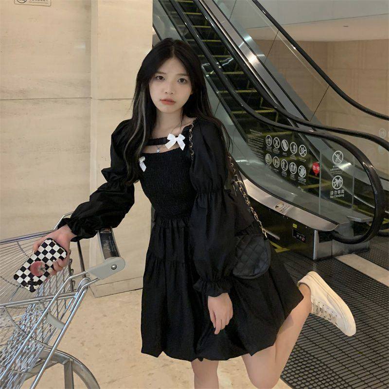 少女蓬蓬裙大码短款蓬蓬裙设计感收腰显瘦蝴蝶结镂空减龄长袖裙子热门设计联盟服务商