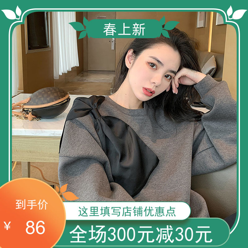 2021秋季新款休闲百搭设计感圆领套头宽松显瘦中长款蝴蝶结卫衣女热门设计联盟服务商