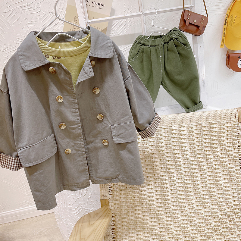 设计感复古双排扣男童女童上衣宝宝全棉小翻领外套儿童风衣2021春热门设计联盟服务商
