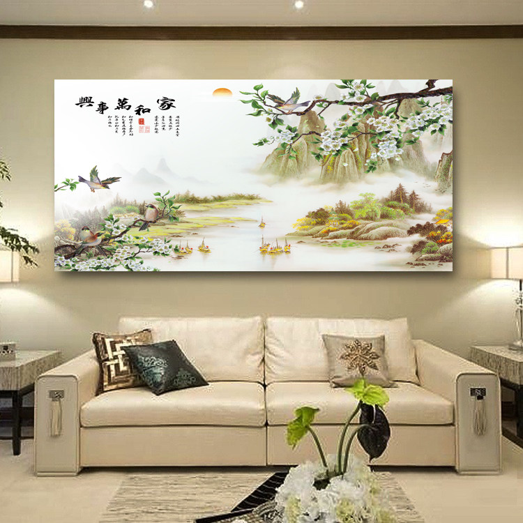 新中式客厅沙发背景墙装饰画横版单幅山水风景画书房挂画餐厅壁画热门设计联盟服务商