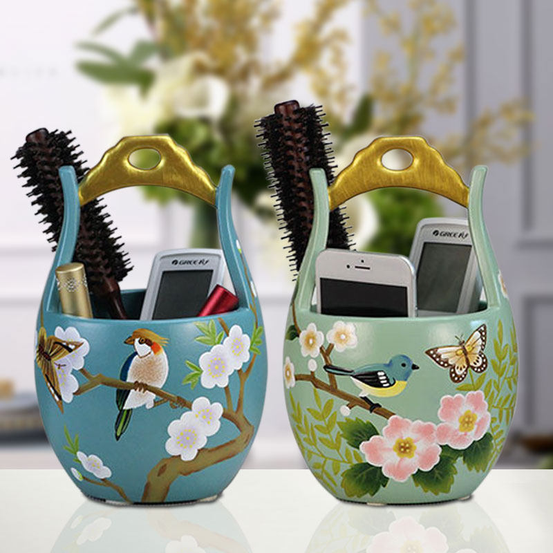 收纳盒陶瓷摆件桶创意客厅家用桌面装饰遥控器梳妆台化妆整理盒热门设计联盟服务商