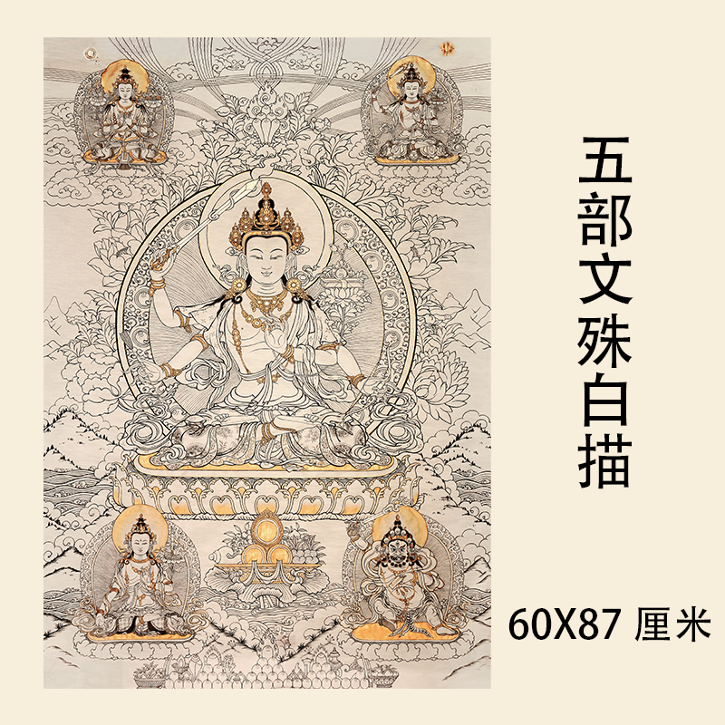 佛画菩萨人物四臂观音五部文殊唐卡线稿白描高清图临摹素材热门设计联盟服务商