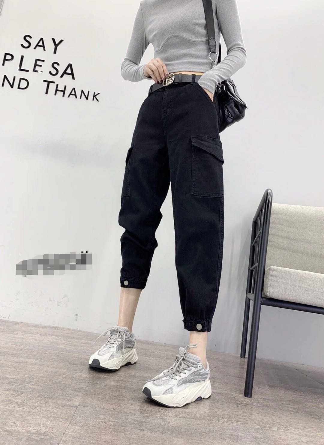 比尚野99951春秋韩版高腰黑色工装裤女宽松束脚卫裤牛仔裤休闲裤热门设计联盟服务商