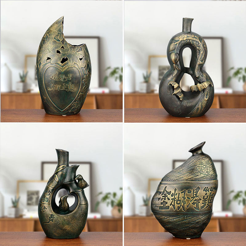 仿青铜陶瓷摆件创意中式家居装饰品工艺品客厅玄关古董架书房摆设热门设计联盟服务商